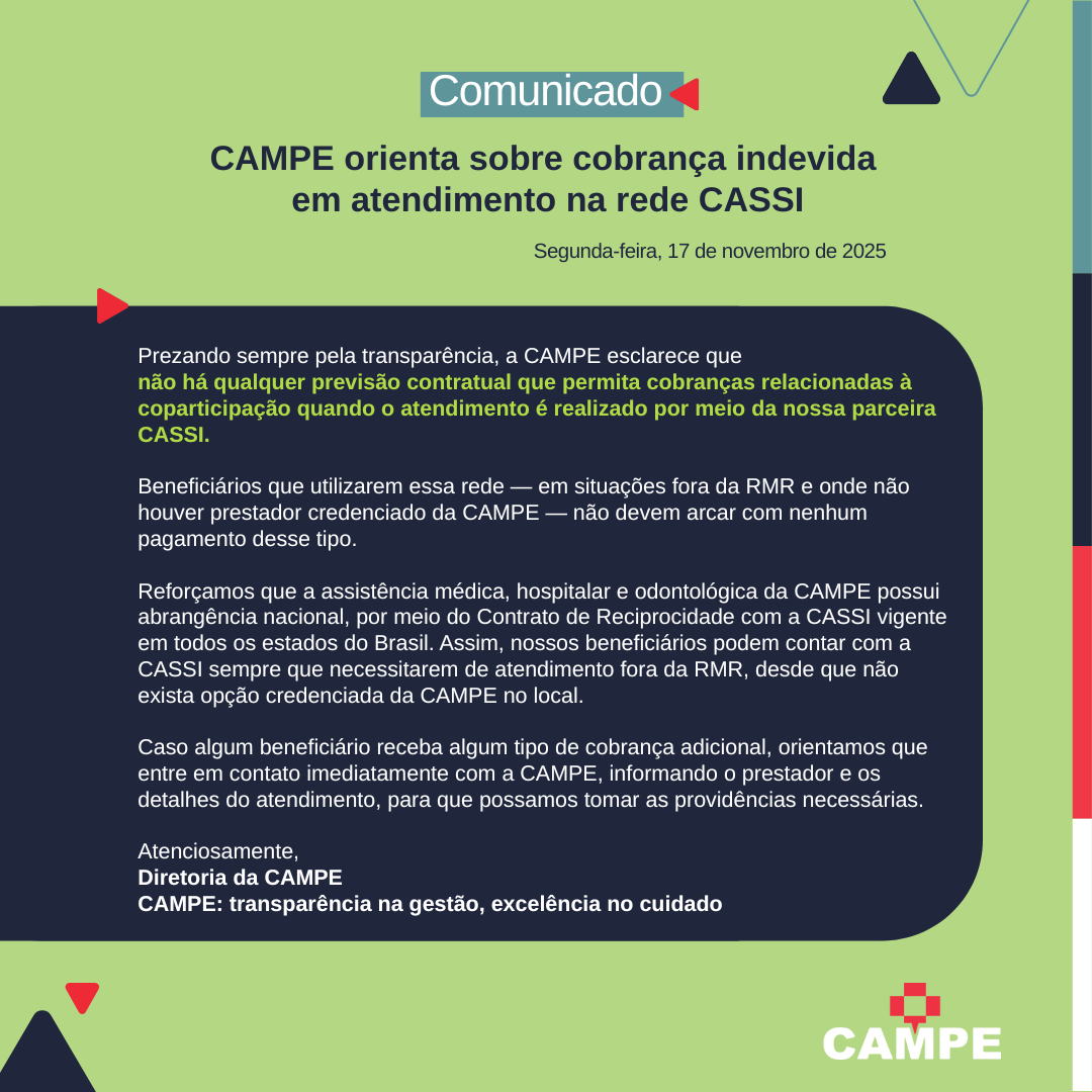Reforçamos que a Clínica Odontológica da CAMPE tem atendimento de segunda a sexta-feira, das 7h às 19h.